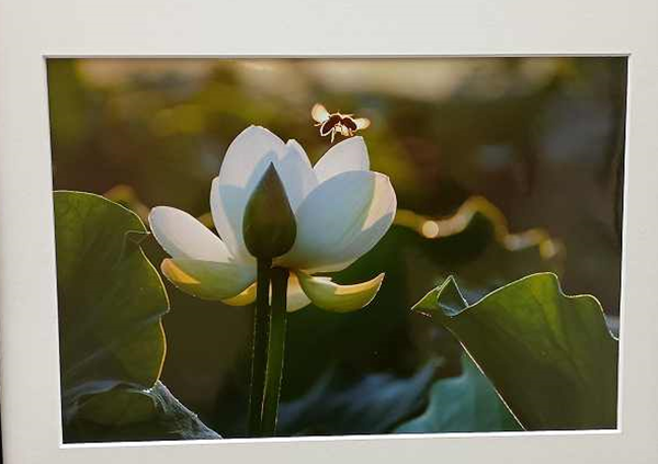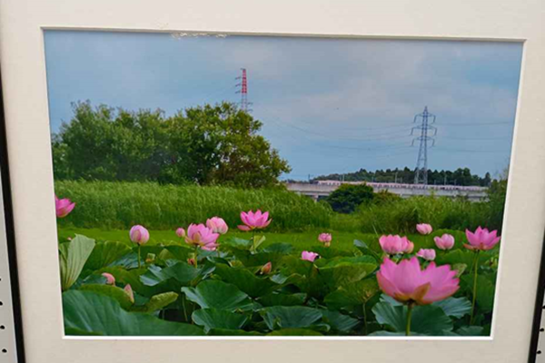 | 「写真deもりや」花と風景展示(2025.11.12) 朝、市役所に行くとロビーにフォトクラブ写遊の郷原弘一会員ら8人の作品が飾ってあった。藤井史夫の「愛のミツバチ」は早朝からじっとカメラを構えて、朝日と蓮の花と蜂が一つになるまでの時間を想像した。「花に囲まれて」はシルビア ソハツキ。市役所とシンボルタワー、青空とカラフルな花に引き寄せられた。シルビアはドイツ出身で現在守谷市の期間職員。展示期間は11/26迄。 |